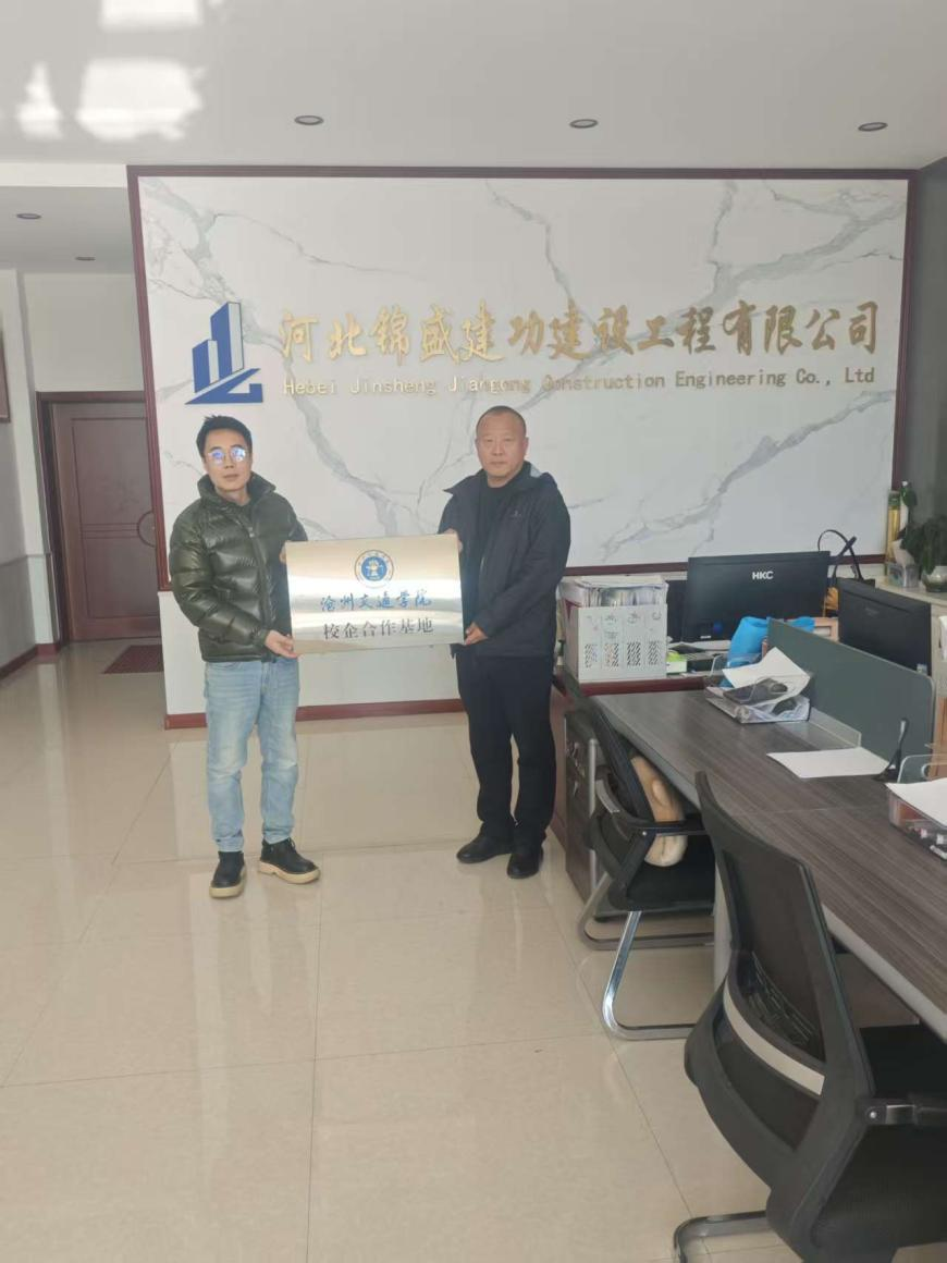 调研期间,经理张长明还介绍了锦盛建功建设工程有限公司在工科建设与智能建造双重驱动下的工程管理专业创新型人才培养探索,并介绍了校企合作,深化产学研合作,实践教学的成功案例,双方初步达成共识,签署校企合作协议,并择期邀请公司相关人员来沧州交通学院参观指导。